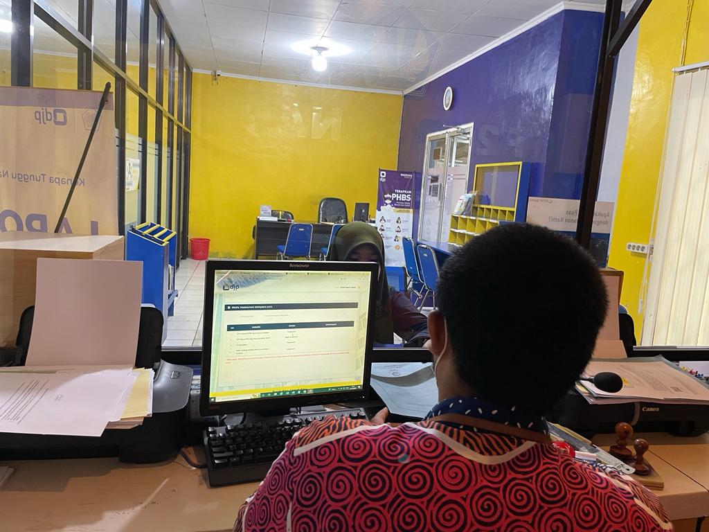 Kantor Pelayanan, Penyuluhan, dan Konsultasi Perpajakan (KP2KP) Sanana memberikan edukasi kepada wajib pajak yang berkunjung ke KP2KP Sanana untuk memperoleh Surat Keterangan Fiskal (Jumat, 14/10). Agenda tersebut berlangsung di Loket Tempat Pelayanan Terpadu (TPT) KP2KP Sanana, Desa Fogi, Kabupaten Kepulauan Sula.