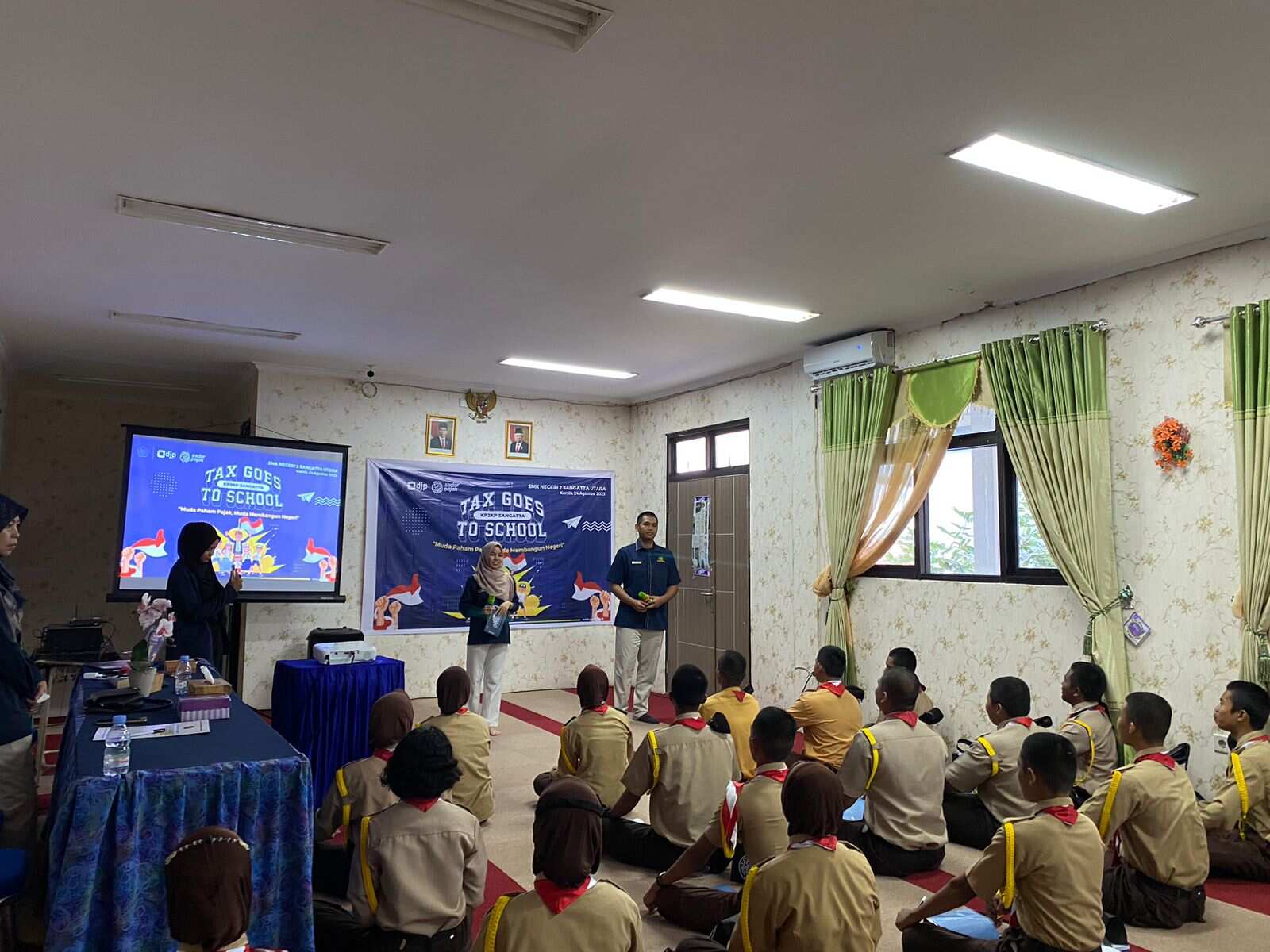 Kantor Pelayanan, Penyuluhan, dan Konsultasi Perpajakan (KP2KP) Sangatta mengadakan Tax Goes to School (TGTS) 2023 yang diselenggarakan di SMK Negeri 2 Sangatta Utara, Kota Sangatta, Kabupaten Kutai Timur (Kamis, 24/8).