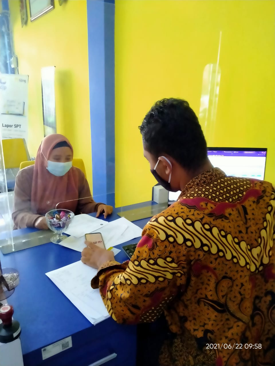 “KP2KP Sekadau sebagai unit kantor yang bertugas membantu KPP (Kantor Pelayanan Pajak) Pratama Sanggau turut aktif menyampaikan berita baik ini kepada wajib pajak di wilayah Sekadau,” ujar petugas Kantor Pelayanan, Penyuluhan, dan Konsultasi Perpajakan (KP2KP) Sekadau, Josua Tommy Parningotan Manurung saat memberikan pelayanan kepada wajib pajak di Tempat Pelayanan Terpadu KP2KP Sekadau, Sekadau (Selasa, 22/6).