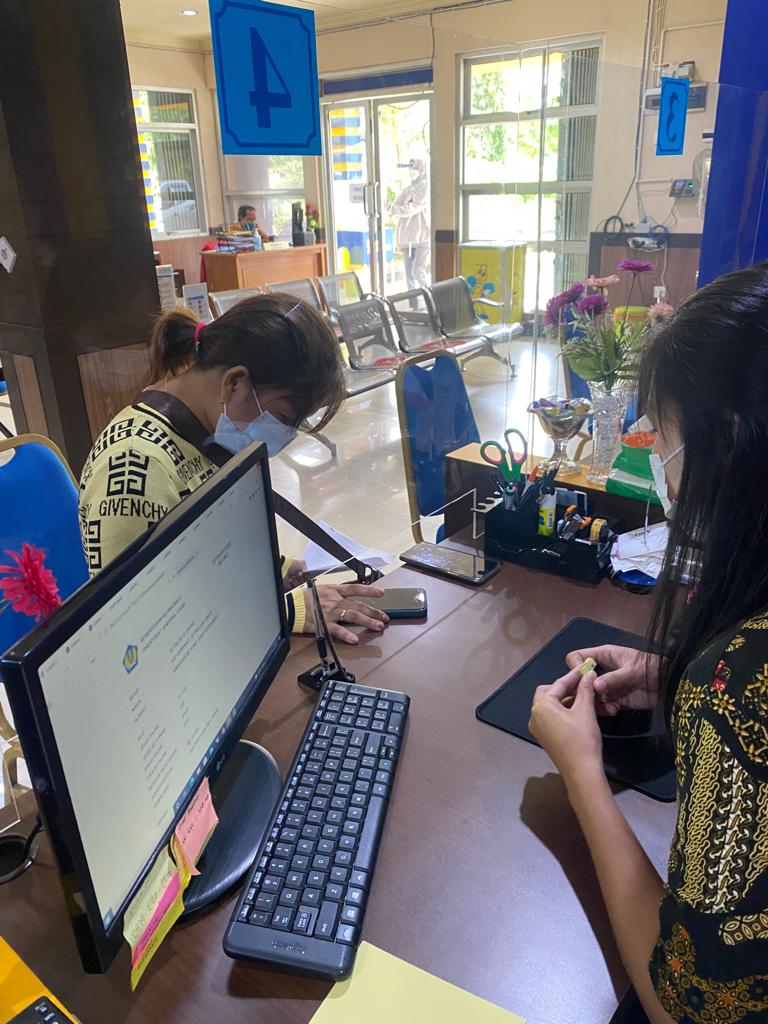 Petugas Pelayanan Kantor Pelayanan Penyuluhan dan Konsultasi Perpajakan (KP2KP) Sendawar melakukan survei pelayanan kepada setiap wajib pajak yang berkunjung ke KP2KP Sendawar, Kab. Kutai Barat (Selasa, 26/10).