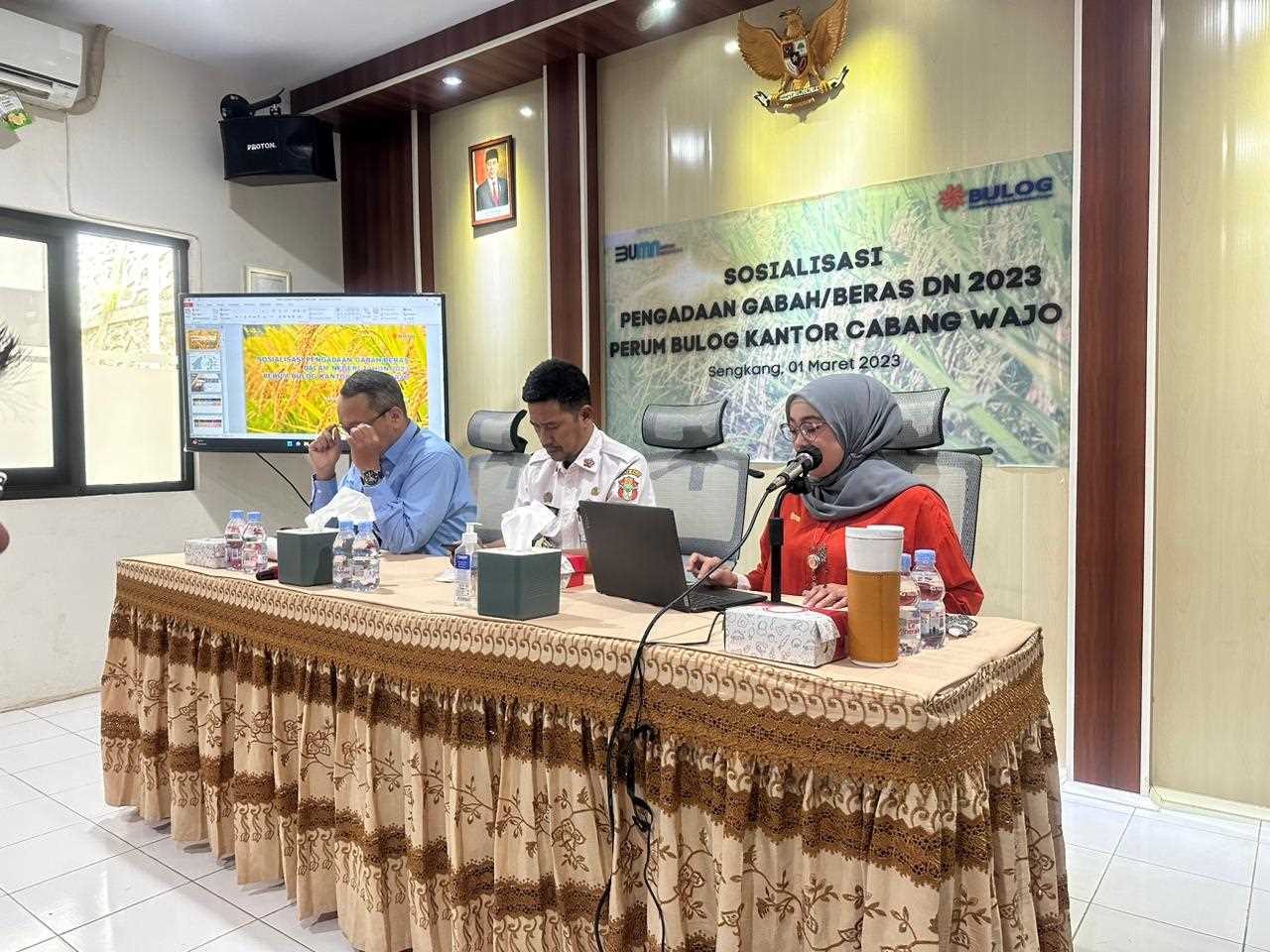 Kantor Pelayanan, Penyuluhan, dan Konsultasi Perpajakan (KP2KP) Sengkang kembali mengisi acara Sosialisasi Pengadaan Gabah/Beras Dalam Negeri Tahun 2023 di Kantor Bulog Cabang Wajo yang beralamat Jalan Bau Baharuddin, Bulu Pabulu, Tempe, Kabupaten Wajo (Rabu, 5/4).
