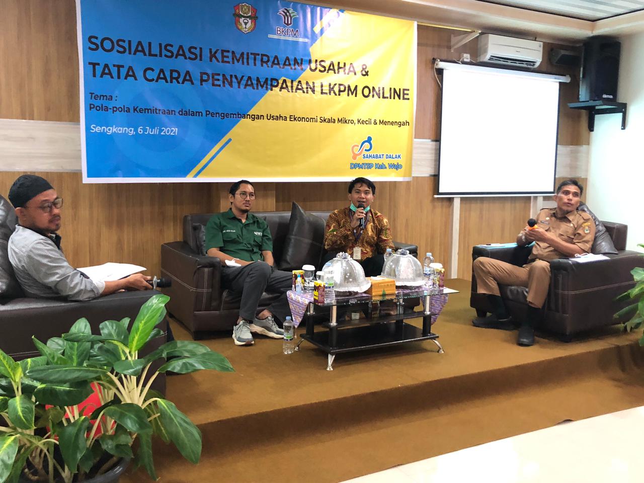Kantor Pelayanan, Penyuluhan, dan Konsultasi Perapajakan (KP2KP) Sengkang menjadi salah satu narasumber dalam kegiatan Edukasi Usaha Mikro, Kecil dan Menengah (UMKM) yang diselenggarakan di Aula Hotel Sermani, Kabupaten Wajo (Selasa, 13/7). Kehadirannya ini atas undangan Dinas Penanaman Modal dan Pelayanan Terpadu Satu Pintu (DPMPTSP) Kabupaten Wajo.