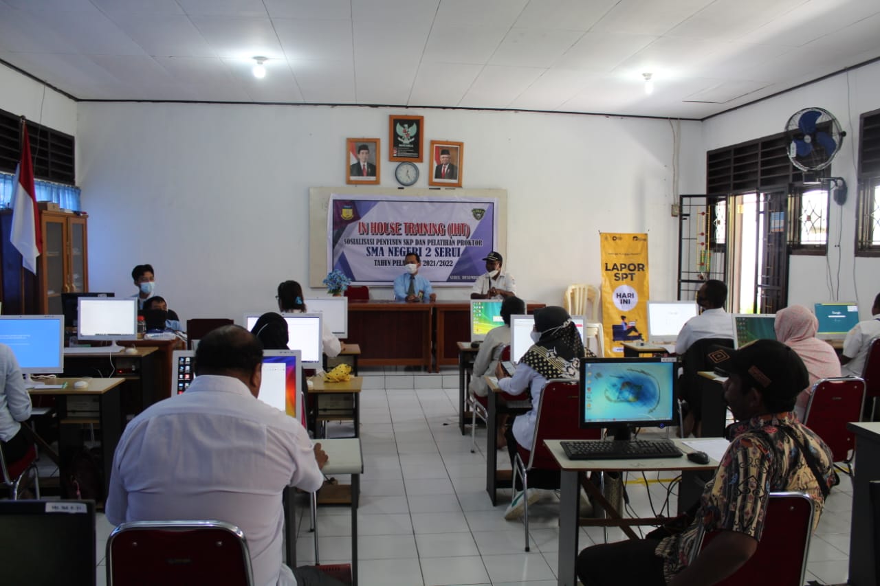 Kantor Pelayanan, Penyuluhan, dan Konsultasi Perpajakan (KP2KP) Serui memenuhi undangan SMAN 2 Serui untuk melaksanakan sosialisasi dan bimbingan teknis perpajakan terkait pelaporan SPT Tahunan PPh (Rabu, 23/2). Kegiatan ini dilaksanakan di Gedung Komputer SMAN 2 Serui yang beralamat di Jalan Flamboyan, Serui, Kabupaten Kepulauan Yapen, Papua. Peserta sosialisasi yang hadir yaitu Kepala Sekolah SMAN 2 Serui Ely Max Mambay beserta seluruh guru dan staf di lingkugan SMAN 2 Serui dengan jumlah peserta 35 orang.