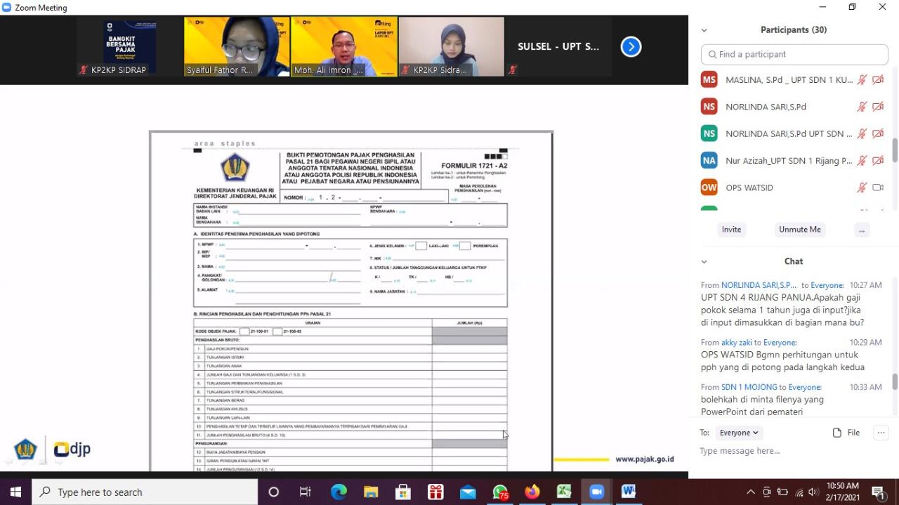 Kantor Pelayanan, Penyuluhan, dan Konsultasi Perpajakan (KP2KP) Sidrap melaksanakan kegiatan edukasi pelaporan SPT Tahunan melalui e-Filing pada Bendahara dan Operator TK dan SD se-Kecamatan Pitu Riase, Kabupaten Sidrap (Senin, 22/2). Kegiatan edukasi ini dilakukan secara daring melalui media Zoom Meeting di kelas pajak KP2KP Sidrap, Sidenreng Rappang, Sulawesi Selatan.