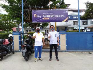 Kegiatan publikasi perpajakan ini berupa pemasangan media luar ruang seperti spanduk ini dilakukan di beberapa sudut strategis di lingkungan Kantor Cabang Bank Rakyat Indonesia (BRI) Sinjai di Kabupaten Sinjai. Publikasi perpajakan tersebut berisi imbauan kepada wajib pajak untuk melakukan pelaporan SPT Tahunan secara daring.