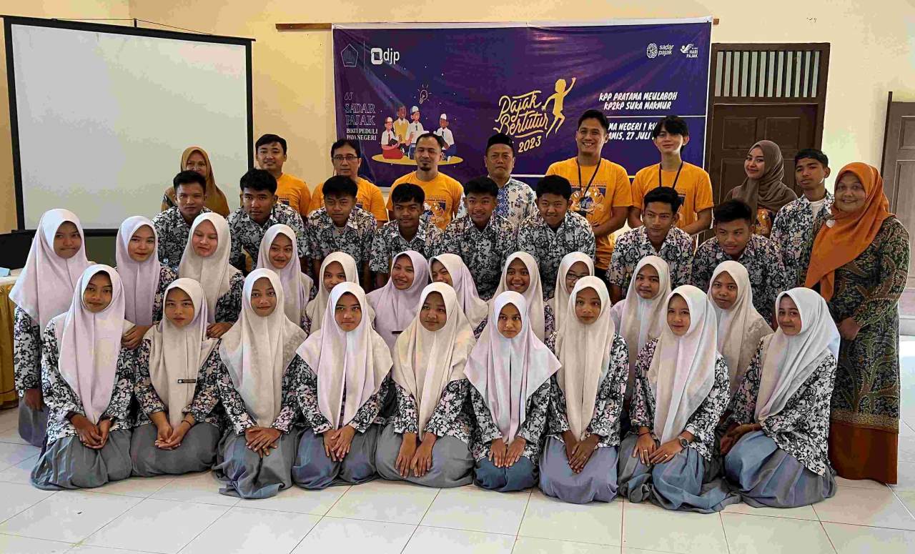 Kantor Pelayanan, Penyuluhan, dan Konsultasi Perpajakan (KP2KP) Suka Makmur melaksanakan kegiatan Pajak Bertutur (Patur) 2023 secara luring di Aula SMA Negeri 1 Kuala, Kabupaten Nagan Raya, Provinsi Aceh (Kamis, 27/07).