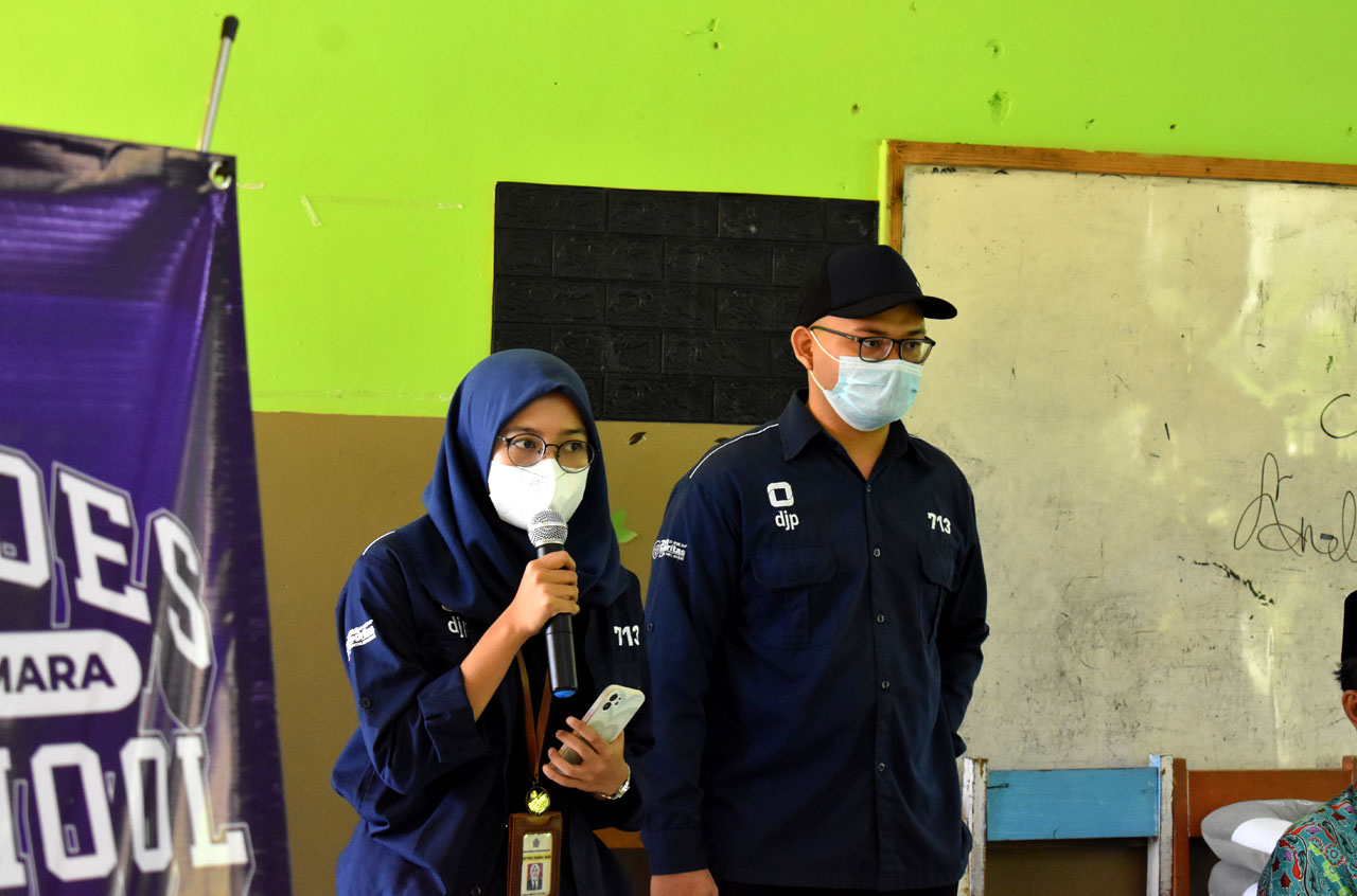 Tim Penyuluh KP2KP Sukamara menyampaikan materi tentang pengertian dan manfaat pajak serta mengenalkan pentingnya pajak kepada para siswa. Sebagai hiburan diberikan beberapa kuis seputar pajak dan hadiah bagi yang dapat menjawab dengan benar dan kepada siswa-siswi yang aktif menyampaikan pertanyaan.