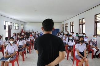 Pada akhir kegiatan, Kepala KP2KP Talaud menyampaikan harapan atas terselenggaranya kegiatan Pajak Bertutur 2021 di SMA Negeri 1 Lirung.