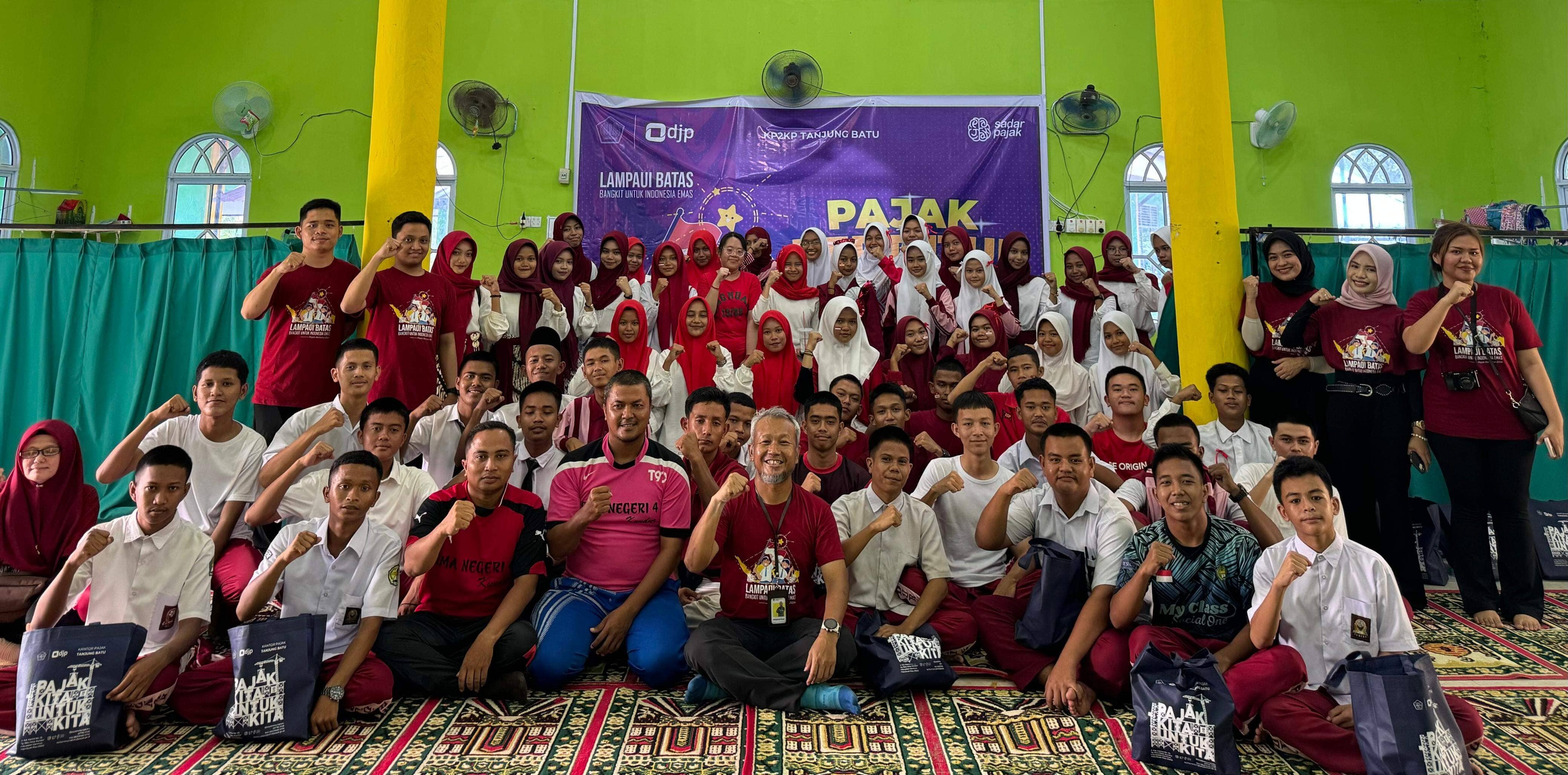 Pelaksana KP2KP Tanjung Batu Timothy Happy Santoso dan Galfonso Tumpal Petrus Badiama Siahaan yang menjadi narasumber menyampaikan materi dengan tema “Lampaui Batas Bangkit Untuk Indonesia Emas”. Dalam kesempatan tersebut, Timothy dan Galfonso menyampaikan peranan dan manfaat pajak sebagai sumber terbesar dalam Anggaran Pendapatan dan Belanja Negara (APBN) serta yang dapat dilakukan oleh para siswa agar turut serta menjadi generasi sadar pajak yang dapat membangun Negeri. “Giat belajar dan tak pernah berhenti mengejar prestasi adalah salah satu peran nyata siswa untuk membangun Negeri,” ujar Tomithy.