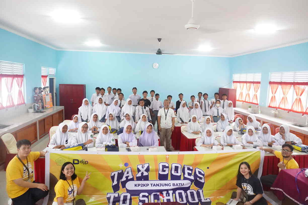 Kantor Pelayanan, Penyuluhan, dan Konsultasi Perpajakan (KP2KP) Tanjung Batu bersama dengan Kantor Pelayanan Pajak (KPP) Pratama Tanjung Balai Karimun menggelar kegiatan Tax Goes to School (TGTS) di Sekolah Menengah Atas Negeri (SMAN) 2 Kundur, Kundur Utara, Karimun, Kepulauan Riau (Kamis, 10/11). TGTS kali ini yang penyelenggaraannya bertepatan dengan peringatan Hari Pahlawan, bertujuan memberi edukasi kepada siswa SMAN 2 Kundur tentang pentingnya kesadaran pajak, sebagai wujud cinta kepada Negara Indonesia dan menghargai jasa para pahlawan.
