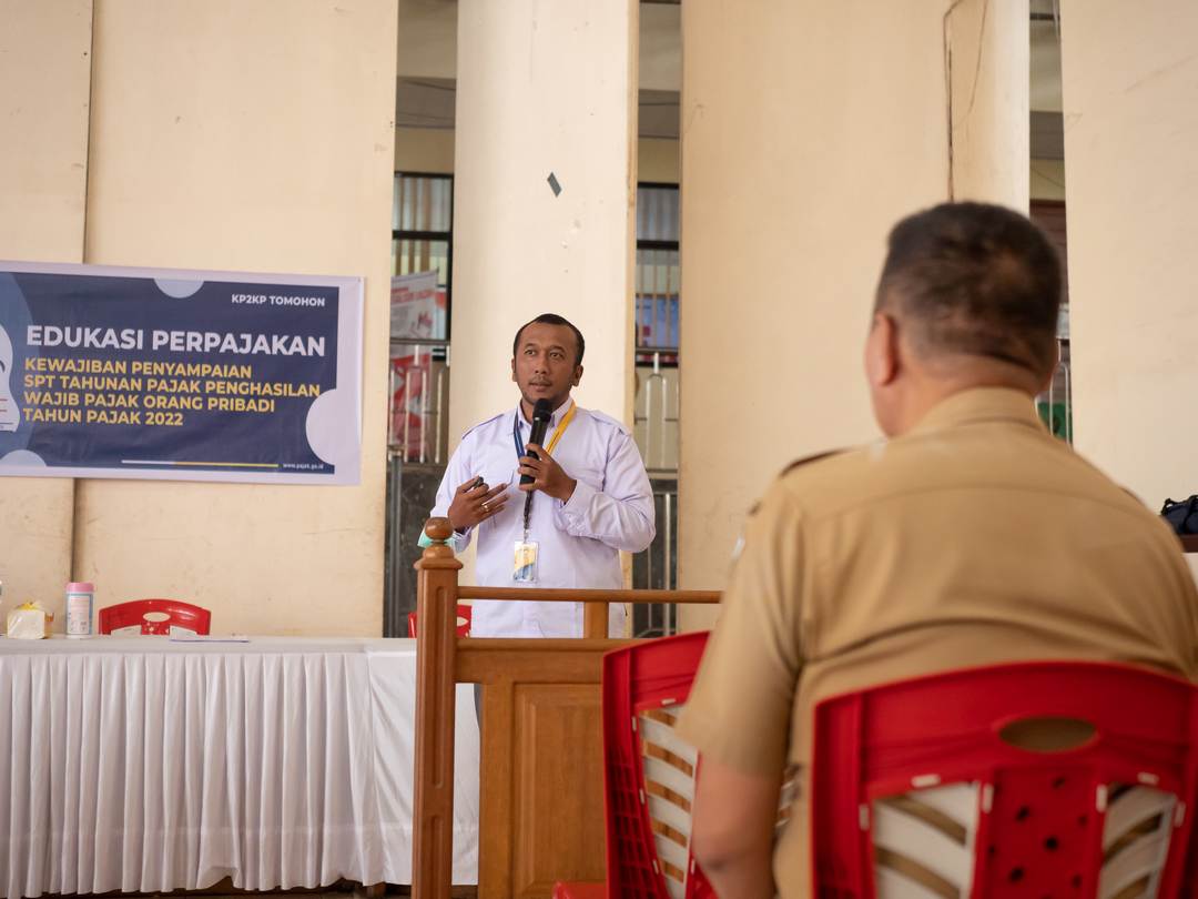 Kantor Pelayanan, Penyuluhan, dan Konsultasi Perpajakan (KP2KP) Tomohon bersama Kantor Pelayanan Pajak (KPP) Pratama Manado mengadakan kegiatan edukasi dan asistensi pengisian Surat Pemberitahuan Tahunan (SPT) Pajak Penghasilan (PPh) bagi Wajib Pajak Orang Pribadi melalui e-Filing bertempat di Aula Dinas Pendidikan dan Kebudayaan Daerah Kota Tomohon (Senin, 30/1).