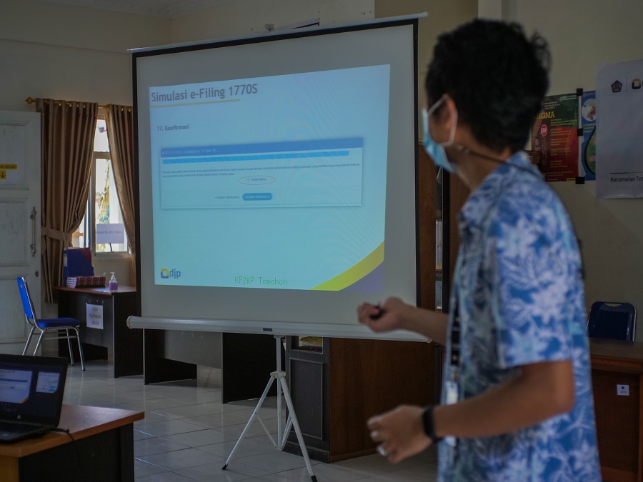 KP2KP Tomohon menggelar Edukasi Perpajakan mengenai Tata Cara Pengisian SPT Tahunan PPh OP melalui e-Filing (Jumat, 26/2). Kali ini, giliran Kecamatan Tomohon Tengah yang dikunjungi oleh KP2KP Tomohon. Kegiatan ini dihadiri oleh Camat Tomohon Tengah Edvin M. J. Joseph.