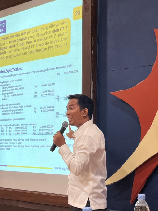Sosialisasi kepada pegawai yang dilaksanakan kali ini bertujuan untuk memberikan pemahaman terkait kewajiban pelaporan SPT Tahunan bagi Wajib Pajak Orang Pribadi, baik yang memiliki penghasilan bruto di bawah 60 (enam puluh) juta dalam setahun maupun bagi yang memiliki penghasilan bruto di atas 60 (enam puluh) juta dalam setahun sesuai UU No. 6 Tahun 1982 yang mengalami beberapa kali perubahan dan terakhir yang berlaku adalah UU No. 7 Tahun 2021 atau Undang-Undang Harmonisasi Peraturan Perpajakan.