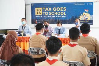 Kantor Pelayanan, Penyuluhan, dan Konsultasi Perpajakan (KP2KP) Ranai bersama SMA Negeri 1 Bunguran Barat menyelenggarakan kegiatan Tax Goes To School (TGTS) secara luring dengan tetap memperhatikan protokol kesehatan di Sedanau, Kecamatan Bunguran Barat, Kabupaten Natuna (Rabu, 24/11).