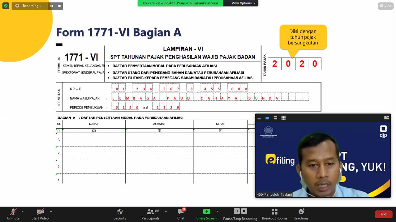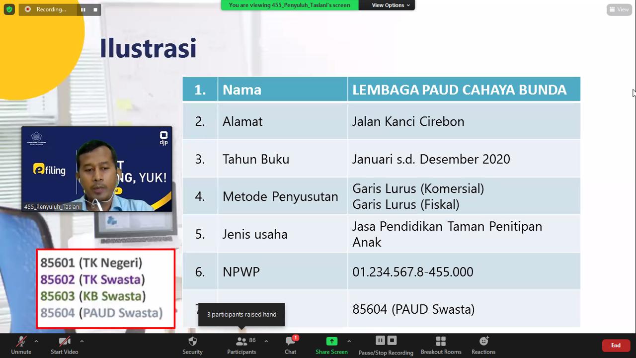 KPP Pratama Cirebon Dua mengadakan kelas pajak Pengisian SPT Tahunan PPh Badan di Cirebon (Rabu, 28/4). Kelas pajak ini bertujuan untuk memberikan pemahaman kepada wajib pajak bagaimana cara mengisi formulir pelaporan SPT Tahunan Badan serta mengingatkan kembali tentang batas waktu pelaporan SPT Tahunan Badan. Kegiatan ini terlaksana berkat kerjasama KPP Pratama Cirebon Dua dengan Dinas Pendidikan Kab. Cirebon. Pihak KPP Pratama Cirebon Dua berharap dengan adanya kelas pajak ini, para pengurus PAUD dapat melaksanakan kewajiban perpajakannya dengan baik dan benar, khususnya pelaporan SPT Tahunan PPh Badan Tahun 2020 yang akan berakhir pada 30 April 2021.
