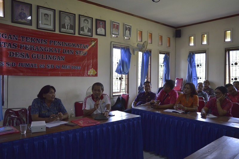 Sekretaris Desa Gulingan membuka acara yang dihadiri oleh perangkat desa dengan menyampaikan bahwa tujuan diadakan sosialisasi ini adalah peningkatan kapasitas atau bimbingan teknis kepada perangkat Desa Gulingan. Tim Penyuluh KPP Badung Utara yang hadir, Yashinta Widi, menyampaikan materi terkait kewajiban perpajakan ADD. Materi yang disampaikan berupa jenis-jenis pajak, tata cara pelaporan, besaran tarif tiap jenis pajak, dan hal-hal yang perlu dilakukan saat memenuhi kewajiban perpajakan.