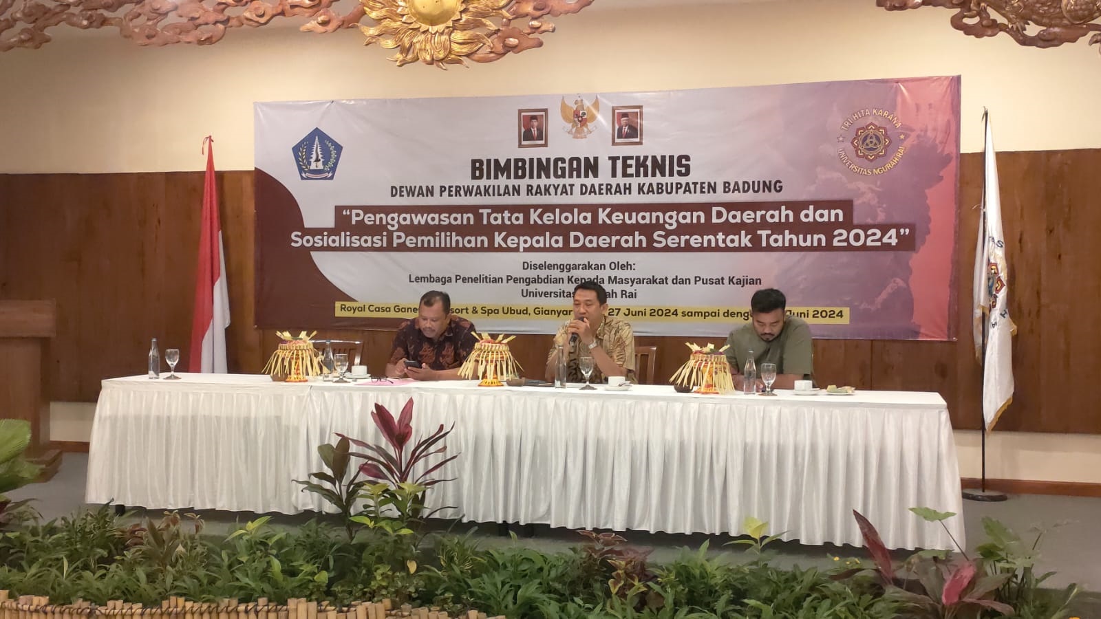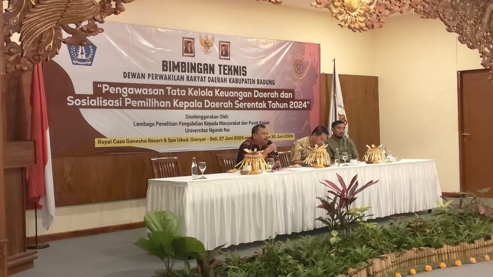 Sosialisasi ini merupakan rangkaian dari kegiatan bimbingan teknis bagi unsur pimpinan dan anggota DPRD Kabupaten Badung yang diselenggarakan oleh Universitas Ngurah Rai Denpasar, dengan narasumber dari KPP Badung Utara yang diwakili oleh Pelaksana Tugas (Plt) Kepala Seksi Pelayanan Dian Agung Susanto dan Account Representative (AR) yang membina Sekretaris DPRD Badung yaitu Eko Purnomo. Sosialisasi ini diikuti oleh 27 peserta yang terdiri dari Pimpinan, Anggota, dan Sekretaris DPRD Kabupaten Klungkung. Acara dibuka oleh Kepala BKPSDM Provinsi Bali pada pukul 09.00 WITA.