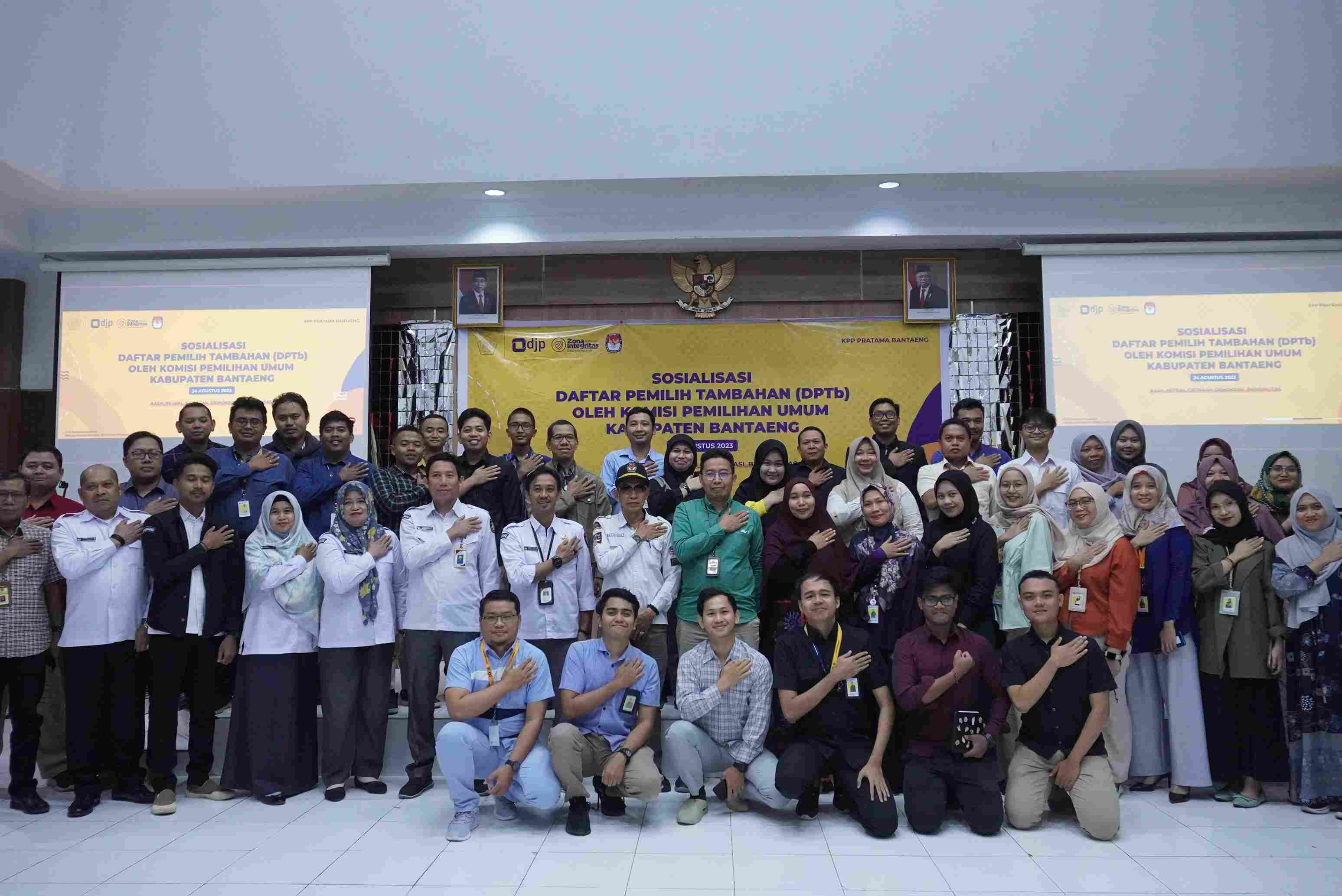 Kantor Pelayanan Pajak (KPP) Pratama Bantaeng bekerja sama dengan Komisi Pemilihan Umum (KPU) Kabupaten Bantaeng menyelenggarakan Sosialisasi Daftar Pemilih Tambahan (DPTb) di Ruang Aula KPP Pratama Bantaeng (Kamis, 24/8). Sosialisasi ini ditujukan kepada seluruh pegawai KPP Pratama Bantaeng, yang sebagian besar bukan berdomisili di Kabupaten Bantaeng, agar tetap dapat menyalurkan suaranya dalam pemilu pada 14 Februari 2024 mendatang.