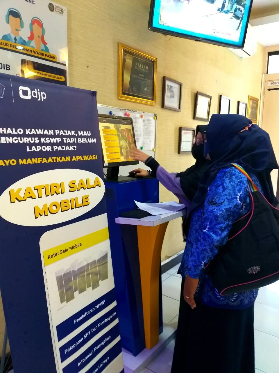 Kegiatan tersebut dimulai dengan memberikan penjelasan singkat mengenai aplikasi ‘Katiri Sala’ kepada wajib pajak dan berbagai fitur yang ada pada aplikasi tersebut. Kemudian, dilanjutkan dengan pelaporan SPT Tahunan orang pribadi yang dilakukan oleh wajib pajak. Pada kesempatan ini, tak lupa diberitahukan kepada wajib pajak bahwa aplikasi ‘Katiri Sala’ juga tersedia dalam versi aplikasi mobile yang akan semakin mempermudah wajib pajak dalam melaksanakan kewajiban perpajakannya maupun mengakses berbagai informasi perpajakan.