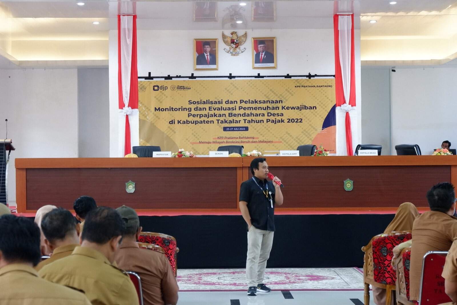 Kantor Pelayanan Pajak (KPP) Pratama Bantaeng menyelenggarakan acara Sosialisasi dan Pelaksanaan Monitoring dan Evaluasi Pemenuhan Kewajiban Perpajakan Bendahara Desa se-Kabupaten Takalar (Selasa, 25/7). Kegiatan ini berlangsung selama 3 (tiga) hari dari hari Selasa, 25 Juli 2023 sampai dengan Kamis, 27 Juli 2023.