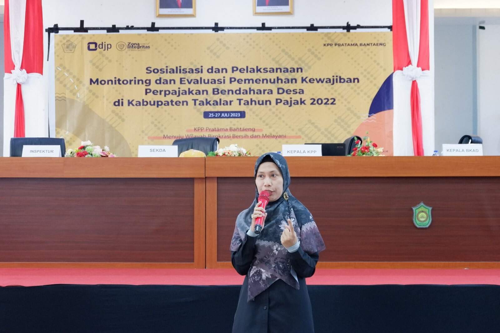 Acara ini dibuka oleh Sekda Kabupaten Takalar dan berlanjut dengan paparan dari Kepala KPP Pratama Bantaeng Falih Alhusnieka. Ia menyampaikan peran penting pajak pusat, Anggaran Pendapatan dan Belanja Negara (APBN), Aggaran Pendapatan da Belanja Daerah (APBD) dan hubungannya dengan dana desa, serta tinggi rendahnya presentase pajak atas penggunaan dana desa berdampak besar pada kontribusi pajak.