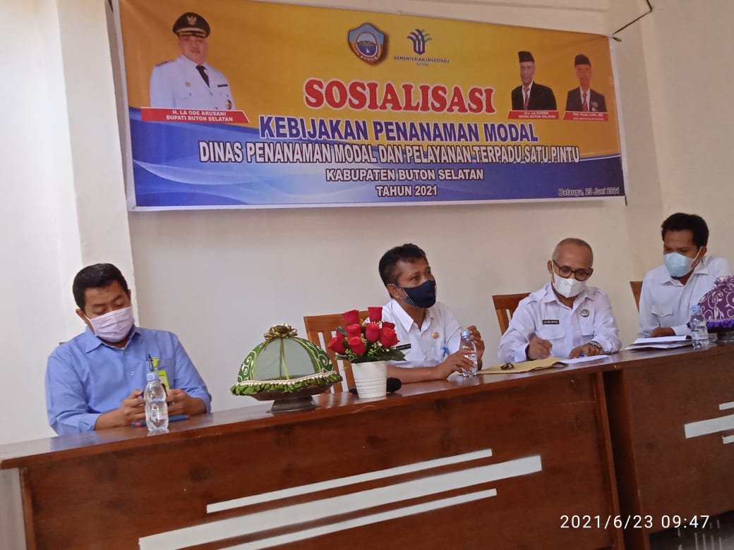Perwakilan Kantor Pelayanan Pajak (KPP) Pratama Baubau menghadiri acara Sosialisasi terkait Kebijakan Penanaman Modal bagi pelaku Usaha Mikro Kecil dan Menengah (UMKM) se-Kabupaten Buton Selatan yang diadakan oleh Dinas Penanaman Modal dan Pelayanan Terpadu Satu Pintu (DPMPTSP) Buton Selatan (Rabu, 23/6). Acara ini diadakan secara luring dengan menerapkan protokol kesehatan Covid-19 di ruang aula Kantor DPMPTSP Buton Selatan, Kabupaten Buton Selatan.