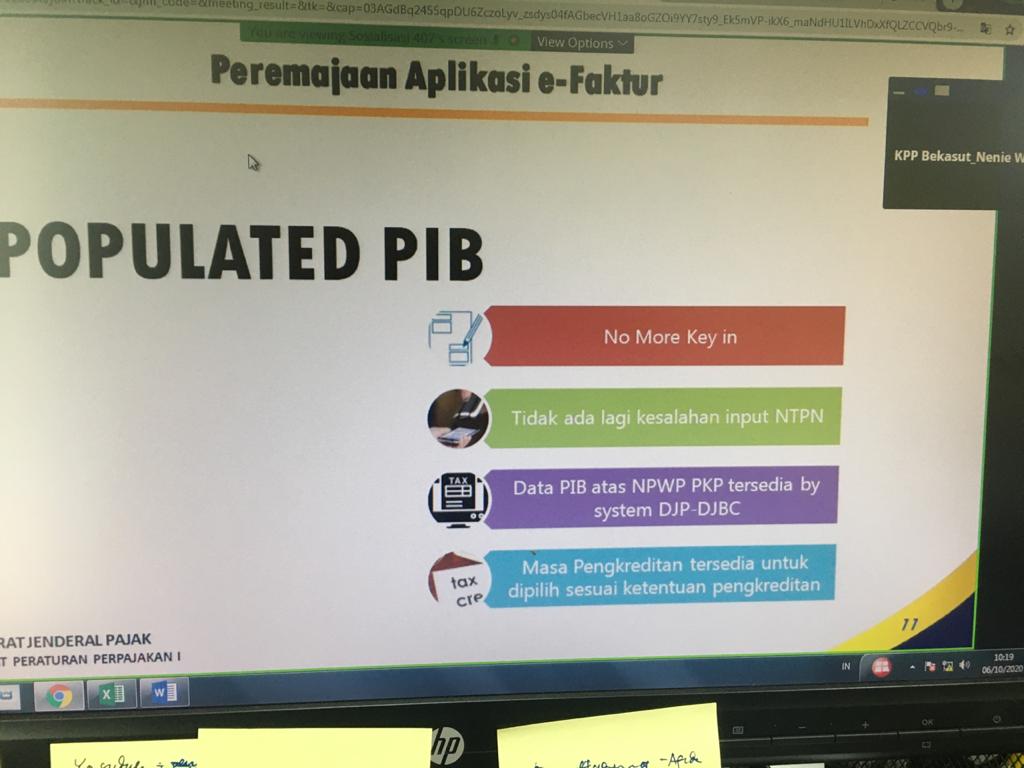 Sejumlah peserta sosialisasi e-Faktur 3.0 mengikuti dengan serius materi yang disampaikan oleh tim penyuluh KPP Pratama Bekasi Utara melalui media daring zoom meeting (Kamis, 8/10) .