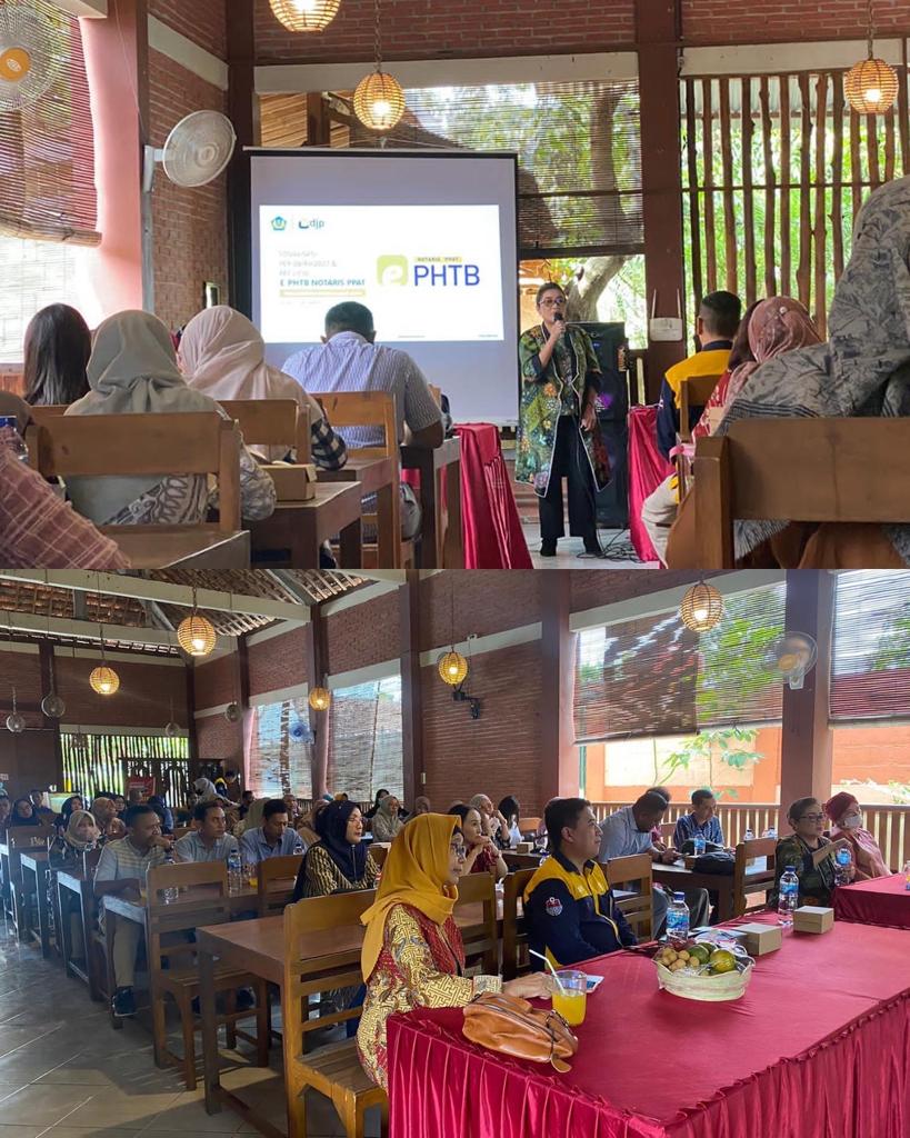 Kantor Pelayanan Pajak (KPP) Pratama Blora menyelenggarakan kegiatan sosialisasi peraturan perpajakan (PER-08/PJ/2022) kepada Notaris dan/atau Pejabat Pembuat Akta Tanah (PPAT), serta bimbingan teknis penggunaan Aplikasi e-PHTB (Pengalihan Hak Atas dan Bangunan) di Blora (Kamis, 27/10).