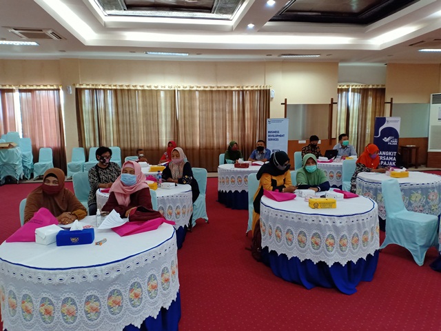 Kantor Pelayanan Pajak (KPP) Pratama Bojonegoro mengajak pelaku Usaha Mikro Kecil Menengah (UMKM) segera memanfaatkan insentif pajak berdasarkan PMK-110/PMK.03/2020 dalam kegiatan Business Development Services (BDS) di Aula Lantai 3 KPP Pratama Bojonegoro (Kamis, 5/11).