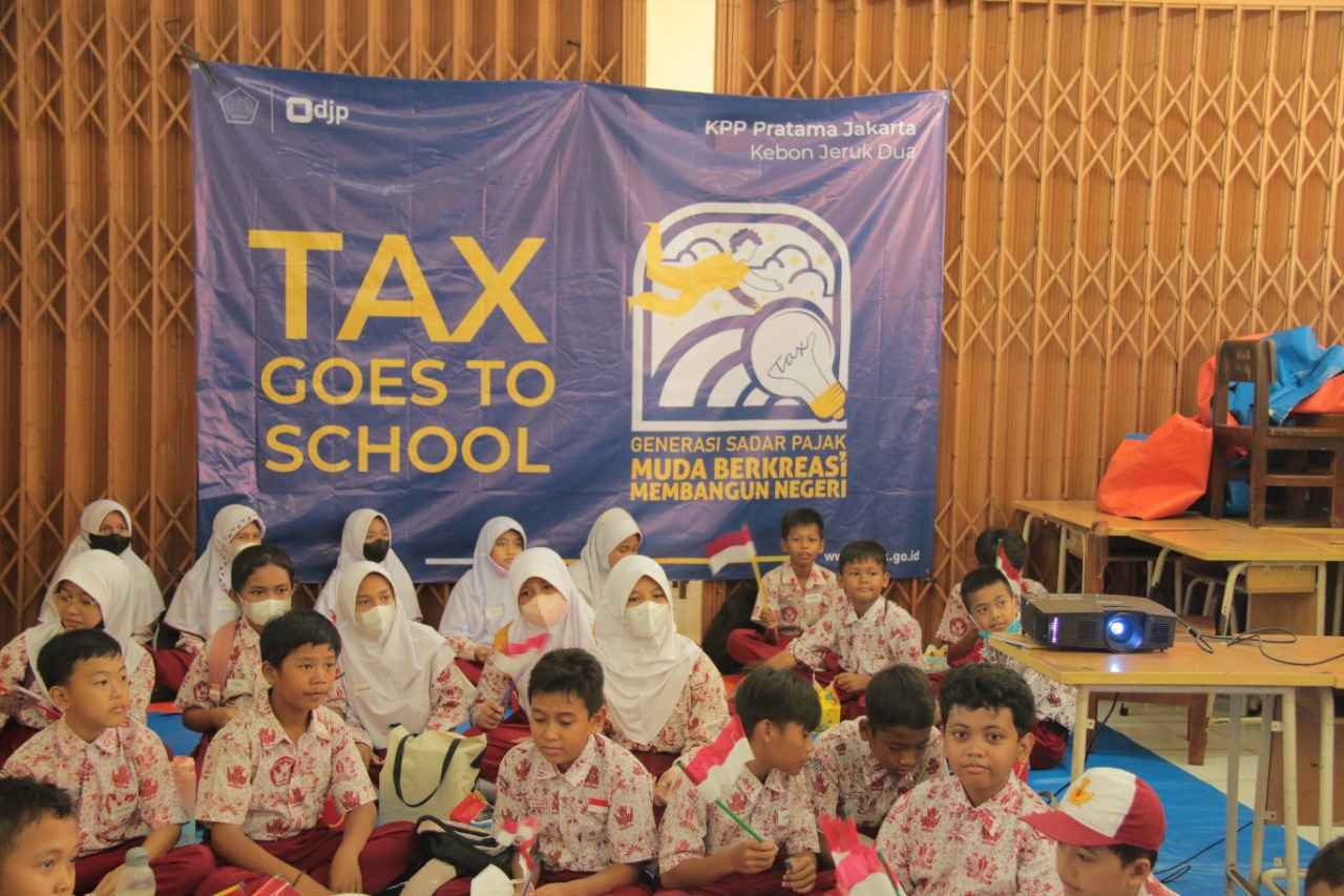 KPP Pratama Jakarta Kebon Jeruk Dua menyelenggarakan kegiatan Tax Goes To School (TGTS) di SDN Kedoya Utara 01, Jakarta Barat (Kamis, 11/8). Kegiatan tersebut melibatkan 40 peserta didik yang berasal dari perwakilan kelas 5A-5D serta beberapa guru dengan mengangkat tema “Generasi Sadar Pajak Muda Berkreasi Membangun Negeri”.