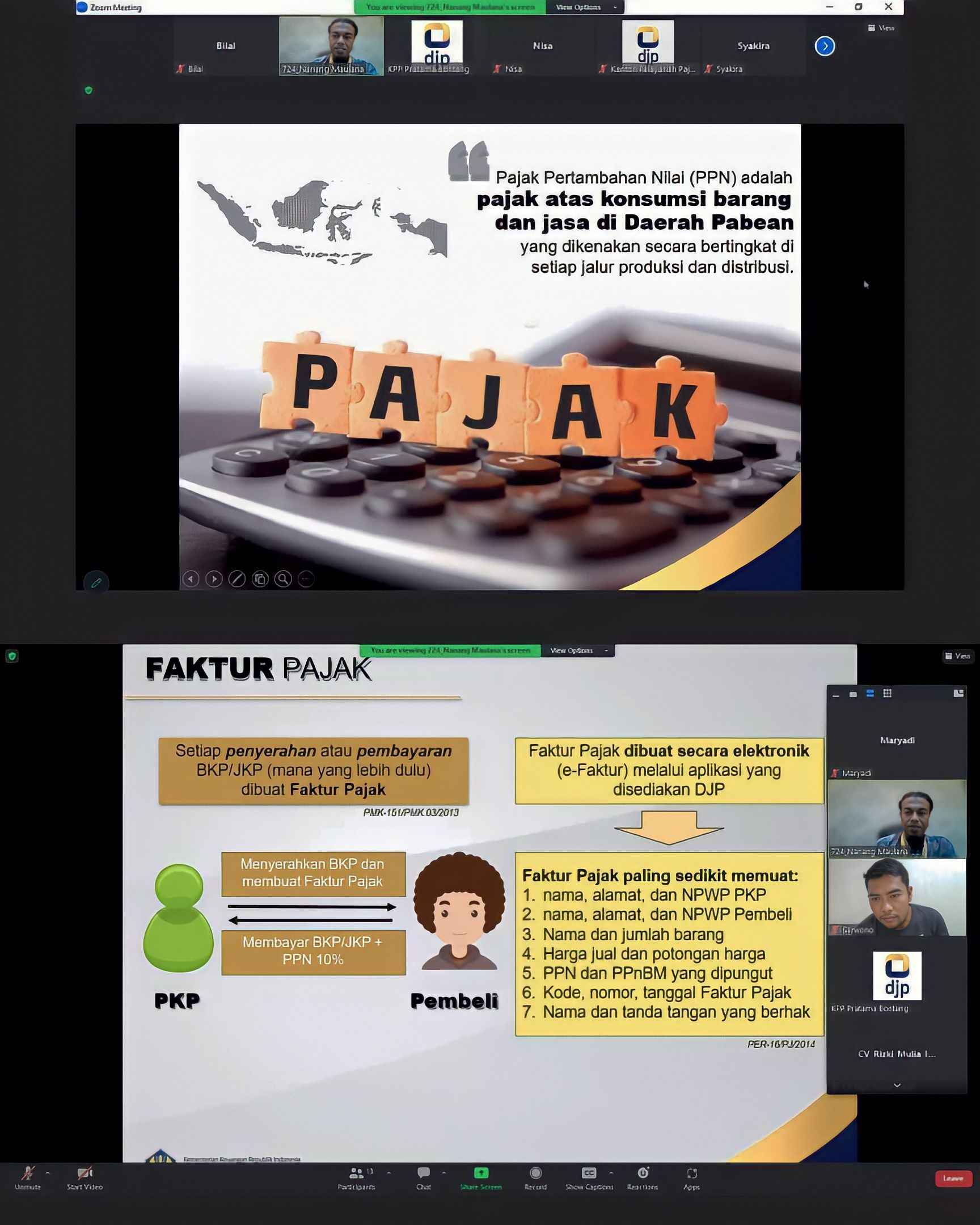 Kantor Pelayanan Pajak (KPP) Pratama Bontang mengadakan kelas pajak bertema Hak dan Kewajiban Perpajakan bagi Pengusaha Kena Pajak (PKP) secara daring melalui Aplikasi Zoom Meeting di Kota Bontang (Jumat, 31/3). Kegiatan kelas pajak berlangsung dari pukul 14.00 WITA sampai dengan selesai.