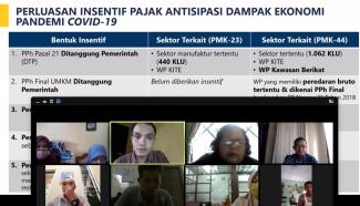 Kepala Seksi Pengawasan dan Konsultasi 1 Eko Budi Raharjo, bersama Kepala Seksi Pelayanan Adin Kusumo Putro memaparkan materi insentif pajak bagi wajib pajak terdampak wabah Civid-19 yang sebelumnya telah diatur dalam PMK 23/PMK.03/2020.