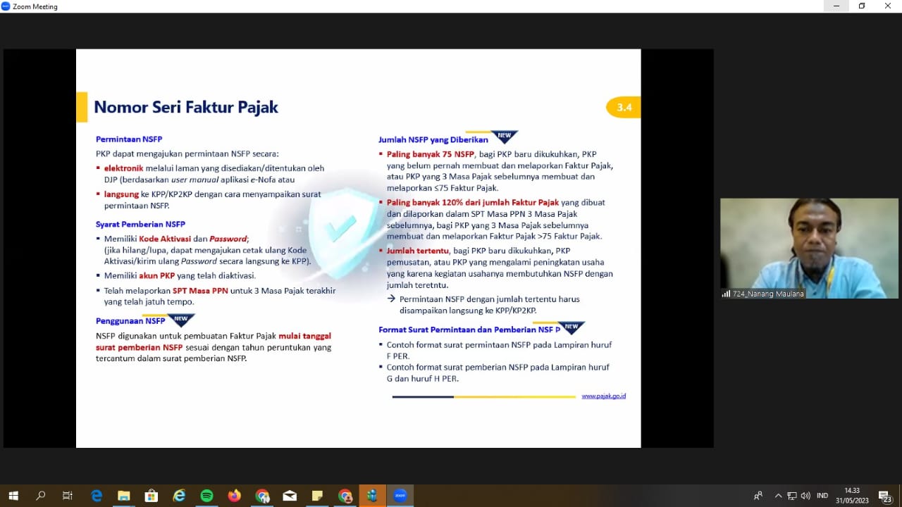 Kelas pajak yang dilakukan melalui Zoom Meeting ini dimulai pada pukul 14.00 WITA sampai dengan 15.00 WITA. Nanang juga berharap bahwa dengan adanya program sosialisasi ini, para wajib pajak dapat mengetahui dan menjalankan hak dan kewajibannya dengan baik dan benar sehingga meningkatkan penerimaan pajak serta NIK dan NPWPnya padan.