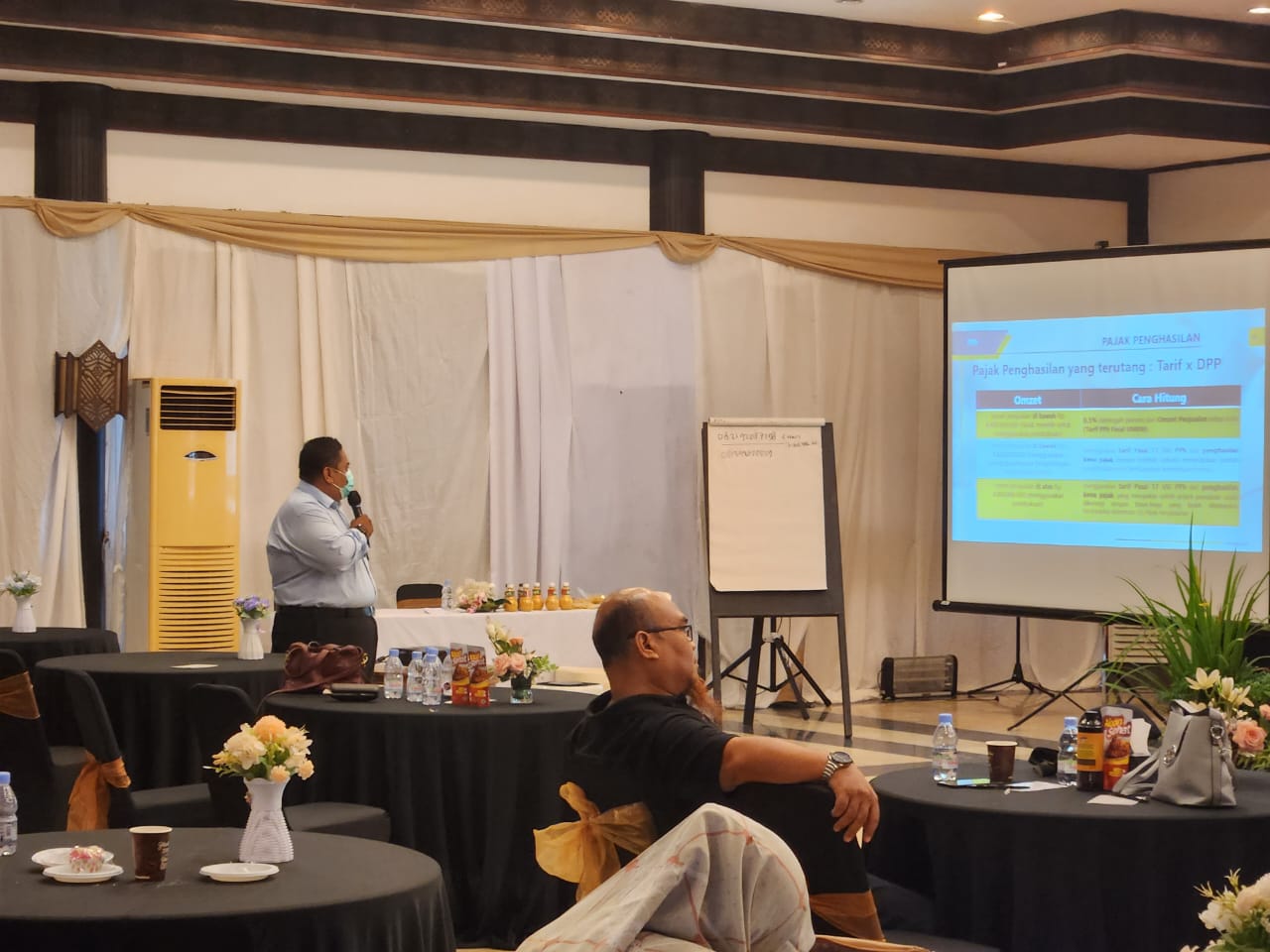 Penyuluh pajak Kantor Pelayanan Pajak (KPP) Pratama Bontang Heryoni Ramadhani memenuhi undangan menjadi narasumber kegiatan Sosialisasi Kegiatan Happy Retirement Pension 2024 PT Indominco Mandiri di Grand Equator Hotel yang berlokasi di Kota Bontang (Rabu, 9/11).