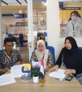 Tim Penyuluh Pajak Kantor Pelayanan Pajak (KPP) Pratama Jakarta Cengkareng melakukan penyuluhan perpajakan dalam Peraturan Menteri Keuangan (PMK) Nomor 48 Tahun 2023 melalui live instagram @pajakcengkareng di Ruang Konsultasi Sunda Kelapa KPP Pratama Jakarta Cengkareng (Selasa, 9/6).