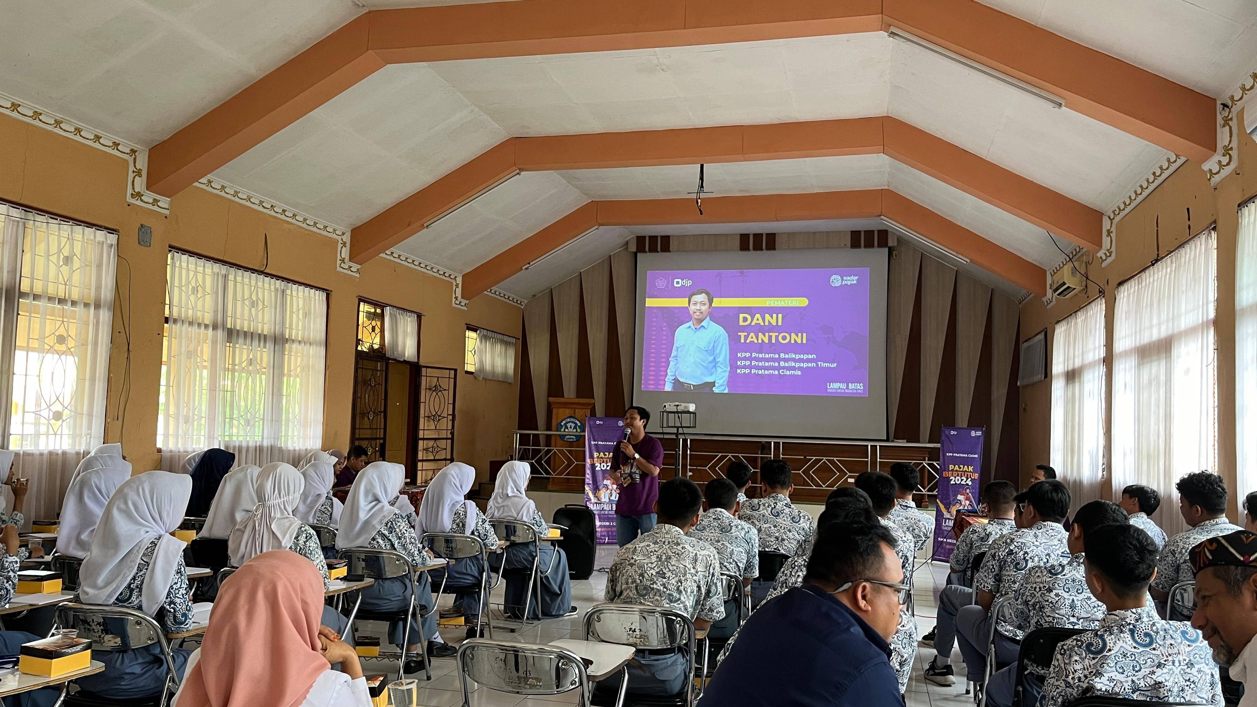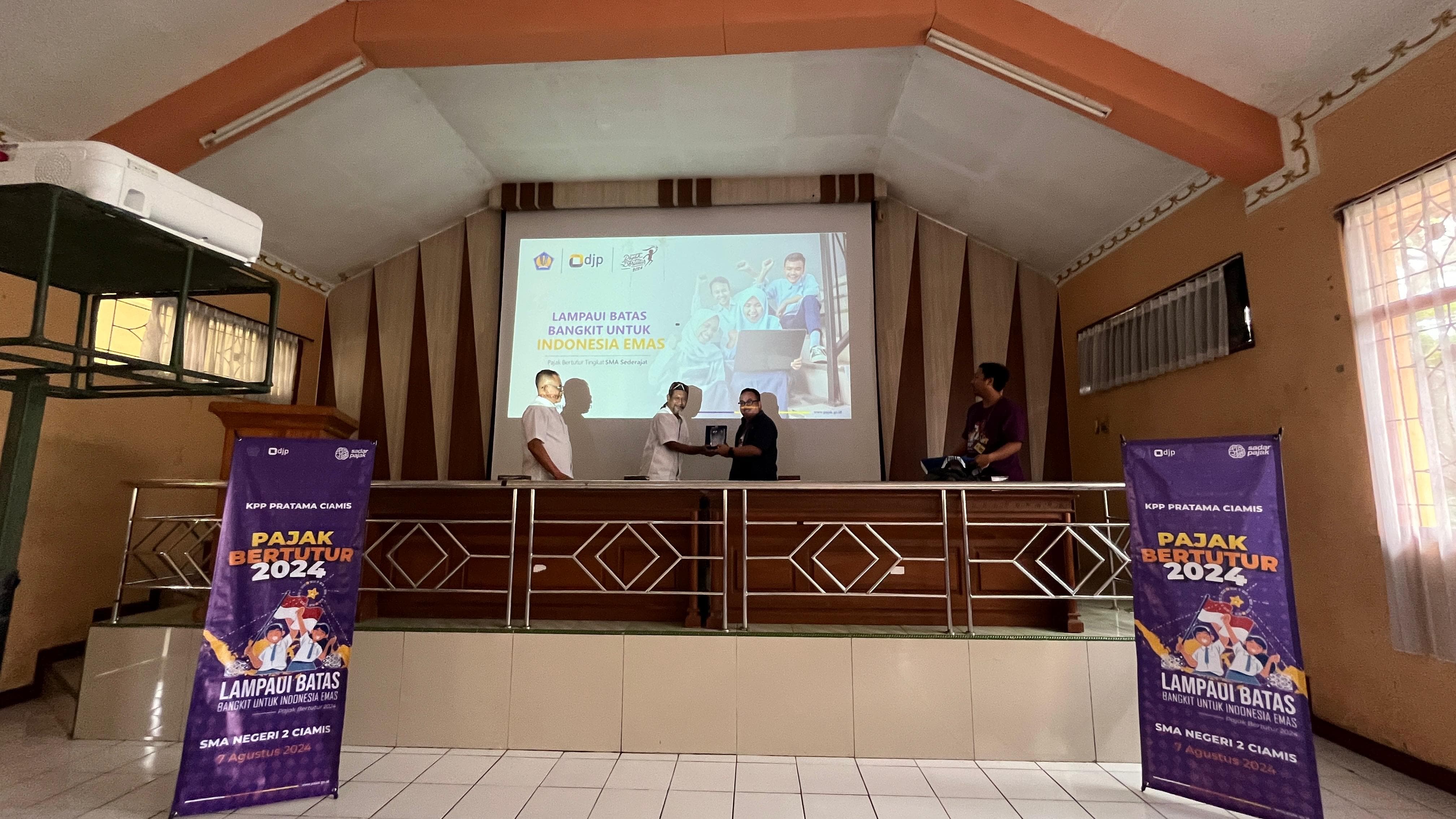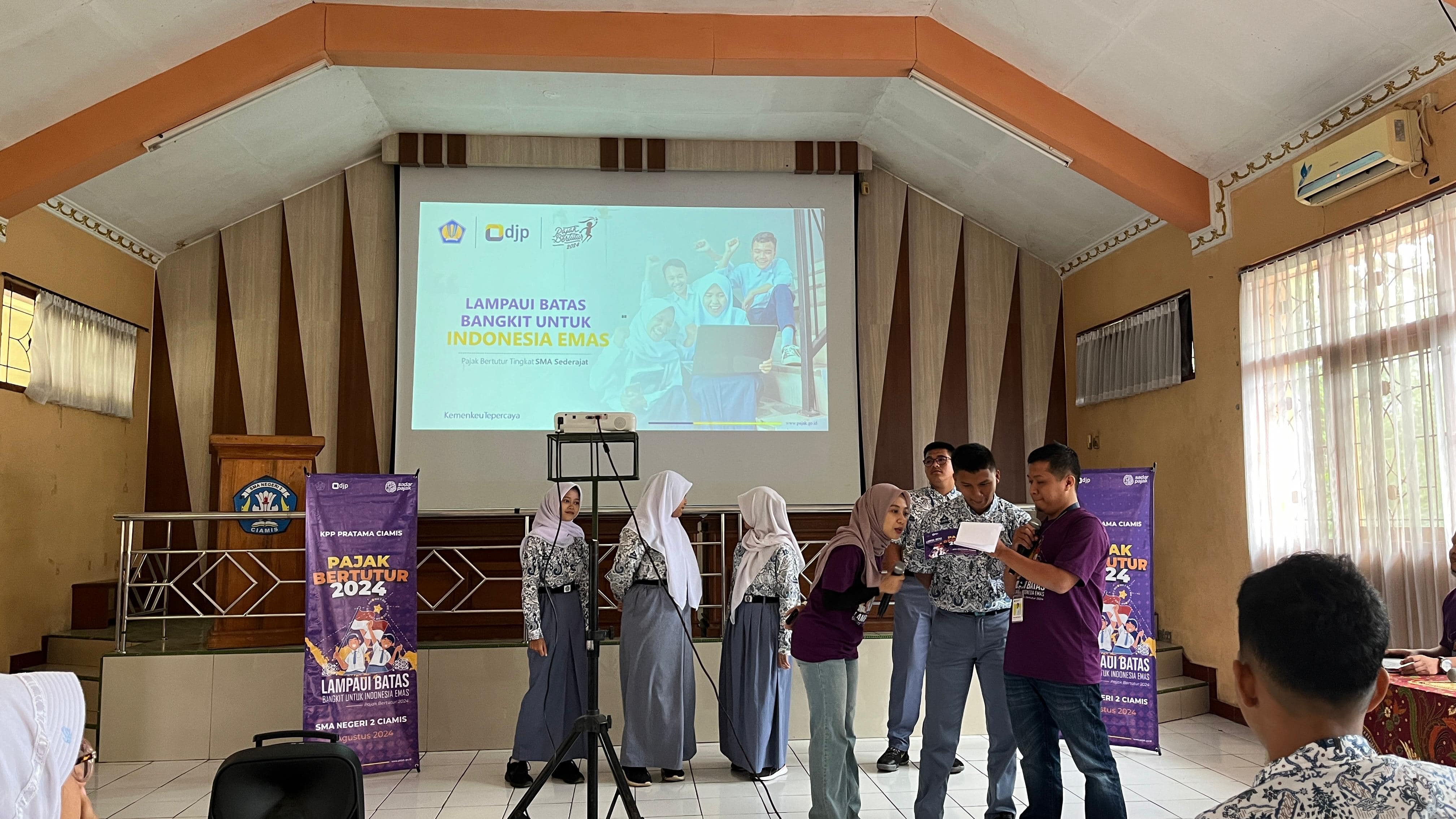Kantor Pelayanan Pajak (KPP) Pratama Ciamis mengadakan kegiatan Pajak Bertutur Tahun 2024 di Sekolah Menengah Atas Negeri (SMAN) 2 Ciamis dengan bertemakan “Lampaui Batas Menuju Indonesia Emas” (Rabu, 7/8). Kegiatan Pajak Bertutur ini dilakukan secara serentak oleh seluruh unit Direktorat Jenderal Pajak di seluruh Indonesia.