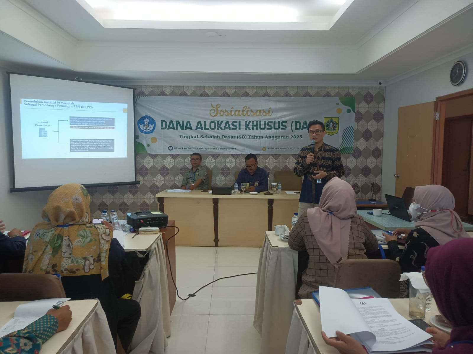 Sebanyak 31 kepala Sekolah Dasar (SD) se-Kabupaten Bogor terima penyuluhan tentang aspek perpajakan atas kegiatan swakelola pembangunan gedung sekolah yang bersumber dari Dana Alokasi Khusus (DAK). Kegiatan tersebut disampaiakan oleh penyuluh Kantor Pelayanan Pajak (KPP) Pratama Cibinong, bertempat di hotel New Ayuda, Puncak, Kabupaten Bogor (Kamis, 25/5).