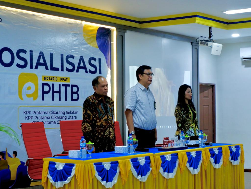 Kantor Pelayanan Pajak (KPP) Pratama Cikarang Utara bersama KPP Pratama Cikarang Selatan dan KPP Pratama Cibitung menyelenggarakan sosialisasi e-PHTB kepada Notaris/PPAT Kabupaten Bekasi (Kamis, 19/10).