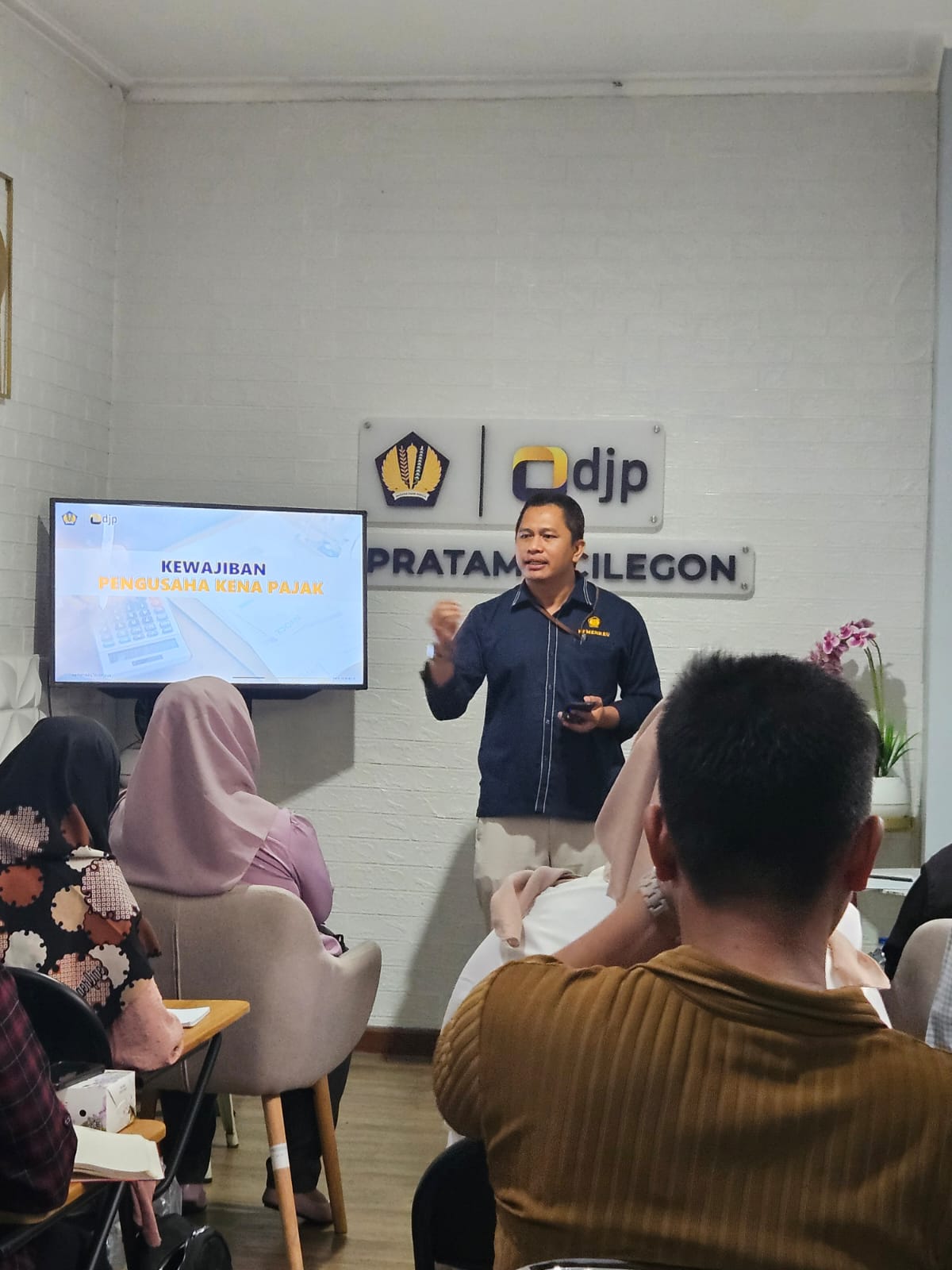 Kantor Pelayanan Pajak (KPP) Pratama Cilegon menyelenggarakan kelas pajak bagi Wajib Pajak Pengusaha Kena Pajak (PKP) Baru di Gedung KPP Pratama Cilegon, Kota Cilegon (Rabu, 9/10). Kegiatan ini dihadiri oleh 14 peserta yang merupakan wajib pajak yang telah terdaftar sebagai PKP.