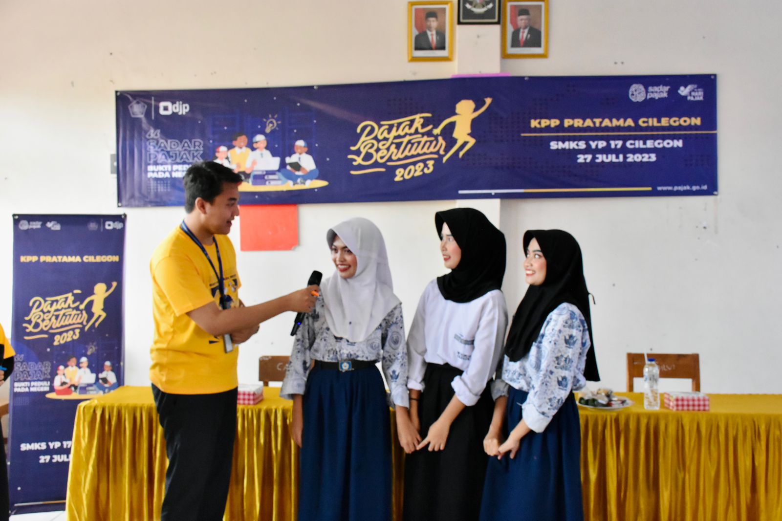 Kantor Pelayanan Pajak (KPP) Pratama Cilegon menyelenggarakan kegiatan Pajak Bertutur di SMKS YP 17 Cilegon di Jalan Raden Sastradikarta No.01, Masigit, Kecamatan Cilegon, Kota Cilegon, Banten (Kamis, 27/7).