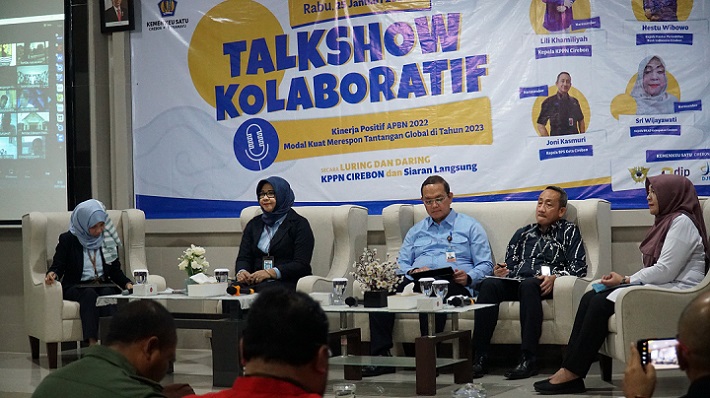 KPP Pratama Cirebon Dua dan KPPN Cirebon serta Kemenkeu Satu se-Cirebon Indramayu menggelar talkshow kolaboratif dengan tema kinerja positif APBN 2022 modal kuat merespon tantangan global di tahun 2023, bertempat di KPPN Cirebon (Rabu, 25/1).