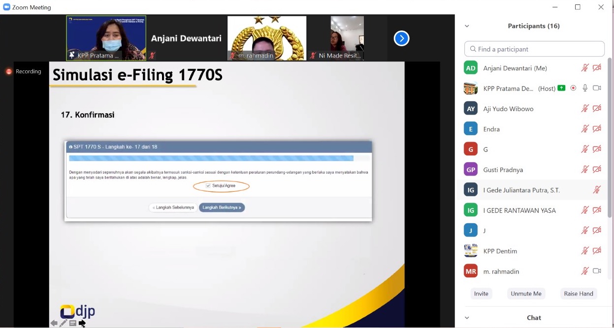 Tim Penyuluh KPP Pratama Denpasar Timur kembali menggelar Kelas Pajak Pengisian SPT Tahunan Wajib Pajak Orang Pribadi Karyawan melalui e-Filing secara daring melalui Zoom Meeting di Bali (Kamis, 11/2).