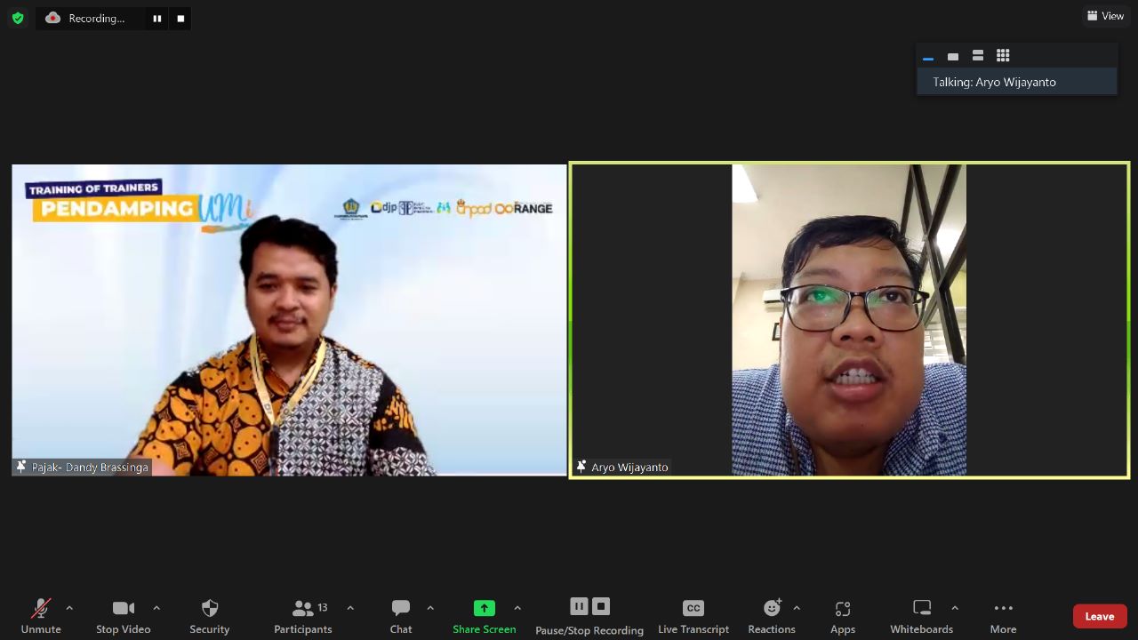 Penyuluh Kantor Pelayanan Pajak (KPP) Pratama Jepara melakukan sosialisasi kepada pendamping kredit ultra mikro (UMi) Koperasi Unit Desa (KUD) Mintorogo yang bertindak sebagai penyalur kredit ultra mikro melalui Aplikasi Zoom Meeting bertempat di Ruang Penyuluhan KPP Pratama Jepara (Jumat, 4/11).