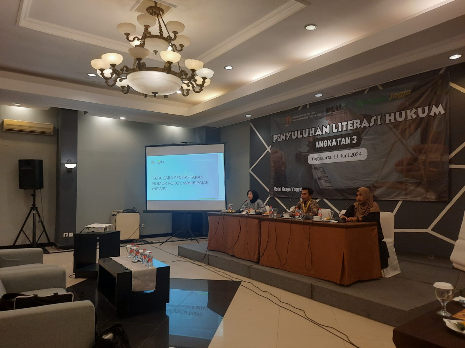 Kantor Pelayanan Pajak (KPP) Pratama Yogyakarta menjadi narasumber dalam acara Penyuluhan Literasi Hukum yang diselenggarakan oleh Dinas Koperasi dan Usaha Kecil Menengah Provinsi Daerah Istimewa Yogyakarta (Selasa, 11/6). Kepala Seksi Pengawasan III Ahmad Fahrul, Account Representative Elly Rosita Dewi Harjanti, dan Asisten Penyuluh Pajak Arifah Nurwijayanti mewakili KPP Pratama Yogyakarta dalam menghadiri acara yang bertempat di Grage Business Hotel Yogyakarta ini.
