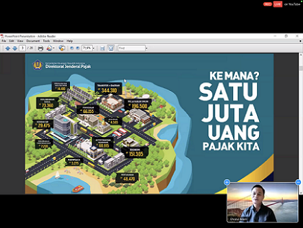 Kegiatan yang dilakukan secara daring ini merupakan pelatihan bagi masyarakat khususnya pegiat UMKM dalam rangka penyusunan, perhitungan, dan pelaporan pajak UMKM. Materi yang diberikan yaitu kewajiban wajib pajak UMKM, pembuatan e-Billing, dan penjelasan tentang pemberian insentif pajak untuk wajib pajak terdampak Covid-19, khususnya PPh Final UMKM Ditanggung Pemerintah (DTP) berdasarkan PMK-86/PMK.03/2020.