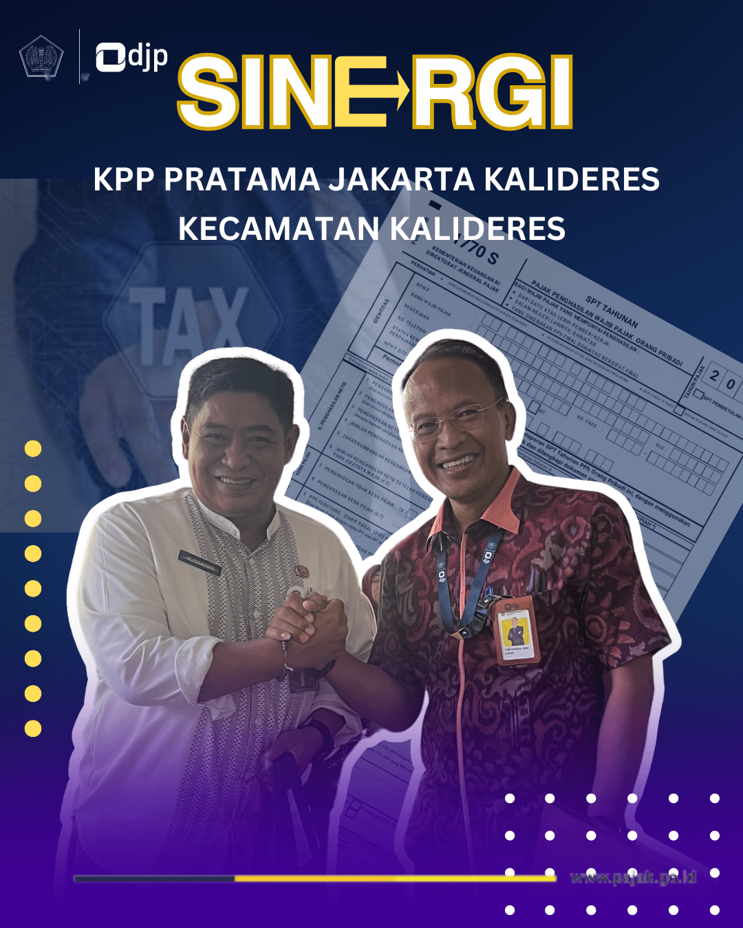 Dalam kunjungan tersebut, Yudi Asmara disambut langsung oleh Camat Kalideres Wukir Prabowo. Yudi Asmara menjelaskan kunjungannya tersebut dilaksanakan sebagai bentuk silaturahmi dan mempererat sinergi yang telah terjalin antara Direktorat Jenderal Pajak dengan Pemda DKI Jakarta. Dalam kunjungan kerja tersebut dibahas pula kegiatan koordinasi dalam penyampaian Surat Pemberitahuan (SPT) Tahunan bagi pegawai dan warga di Kecamatan Kalideres serta membahas agenda kegiatan bersama lainnya.