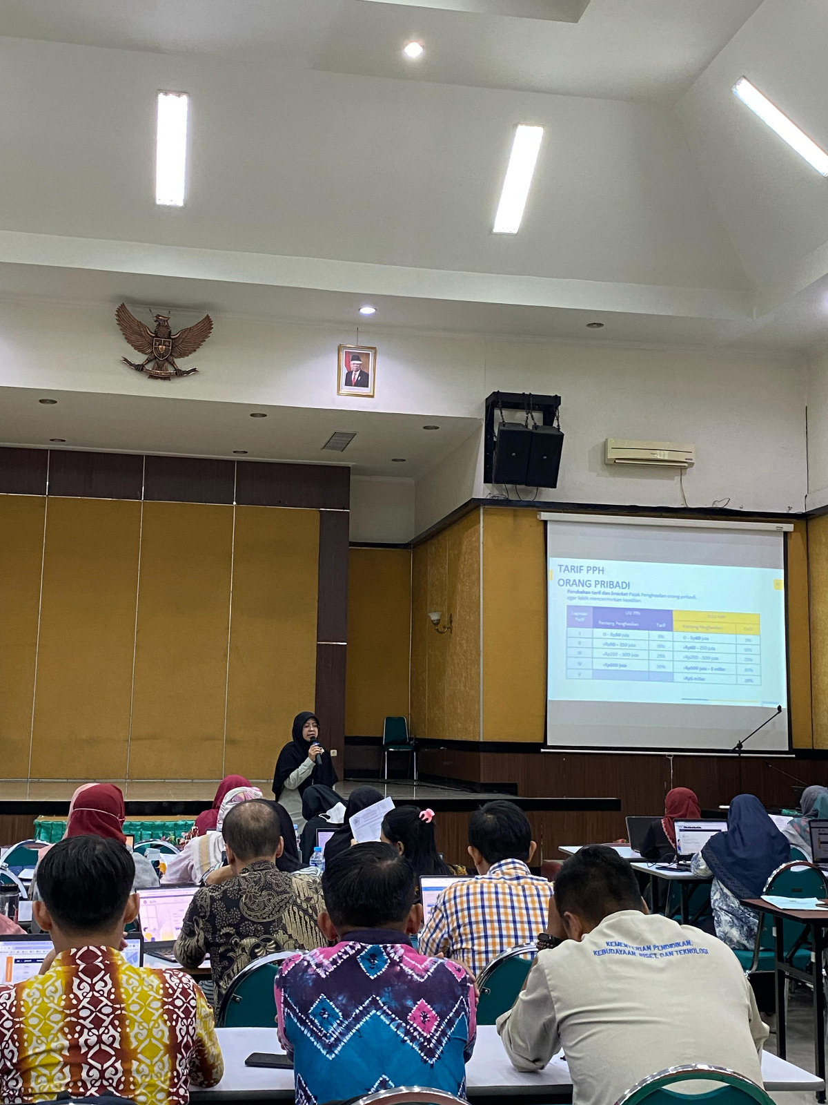 “Bapak Ibu yang hadir di sini, semua saya lihat sudah memegang bukti pemotongan pajak 1721 A2 dan bukti potong final yang dibagikan oleh bendahara tadi. Berkas inilah nanti yang akan kita input ke dalam SPT Tahunan Bapak Ibu semua,” ujar Windah mengawali kegiatan asistensi.