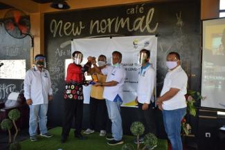 Sedangkan tempat kegiatan dipilih diselenggarakan di New Normal Café, sebuah kafe baru di daerah Tasikmadu Karanganyar yang menerapkan secara ketat protokol pencegahan Covid-19. Setiap pengunjung diwajibkan memakai masker, diukur suhu tubuhnya oleh petugas kafe, kemudian diarahkan untuk mencuci tangan atau menggunakan hand sanitizer yang telah disediakan sebelum memasuki tempat acara. Ruangan semi outdoor tanpa dinding menjamin sirkulasi udara berjalan dengan baik. Tempat duduk peserta diatur berjarak agar memenuhi ketentuan physical distancing. Sebagai tambahan kelengkapan pencegahan penularan Covid-19, Tim KPP Pratama Karanganyar menyediakan face shield yang wajib dikenakan selama acara berlangsung.