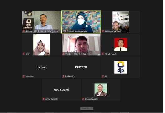 Kantor Pelayanan Pajak Pratama Karanganyar menggelar kelas pajak Program Pengungkapan Sukarela (PPS) melalui Zoom Meeting. (Rabu, 2/2). Kegiatan ini merupakan rangkaian kelas pajak yang diadakan secara rutin setiap hari Rabu hingga bulan Maret nanti. Peserta adalah wajib pajak orang pribadi yang terdaftar di KPP Pratama Karanganyar dan diisi oleh Tim Penyuluh Pajak. Dengan kegiatan ini KPP Pratama Karanganyar berharap wajib pajak akan lebih memahami prosedur dan manfaat PPS.