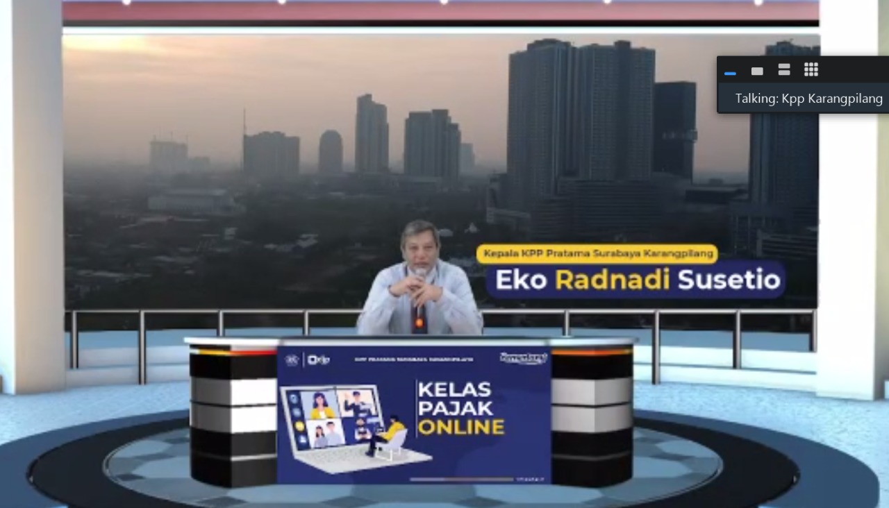 KPP Pratama Surabaya Karangpilang mengadakan kelas pajak untuk memberikan pemahaman kepada wajib pajak terkait implementasi Prepopulated dokumen CK-1 dan dokumen Pemberitahuan Ekspor Barang (PEB) secara daring dari gedung KPP Pratama Surabaya Karangpilang (Rabu, 8/12).